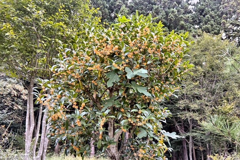 画像の金木犀も秋の象徴です 辺り一帯に匂いを漂わせながら存在をアピールしています